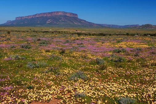 To the East of the Cape West Coast and halfway to the Northern Cape border lie the Cederberg range of mountains along with the Cederberg Wilderness Area. This 71000 hectare area runs from the Pakhuis Pass and the Middleberg Pass. Visitors will need a permit to enter this area and these are issued by a forester at the Algeria Forest Station. These mountains were once covered with the rare Clanwilliam Cedar trees but many of these were either burnt or felled by early pioneers. The Cederberg are home to many natural rock formations, including a Maltese Cross, the Wolfberg Arch, Cathedral Rock and the Pulpit and Finger Rocks. The flora of the Cederberg are quite unique - the snow protea is found nowhere else on Earth.