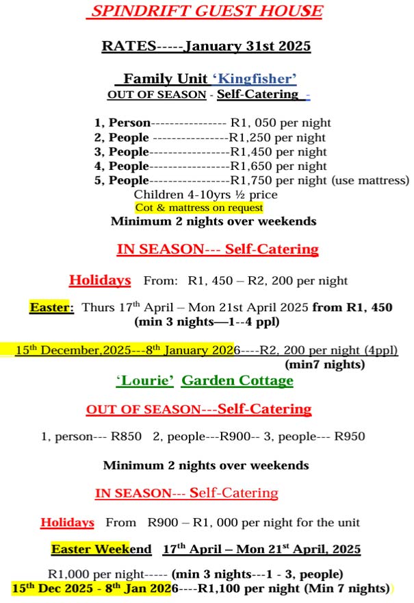Spindrift Guest House - RATES